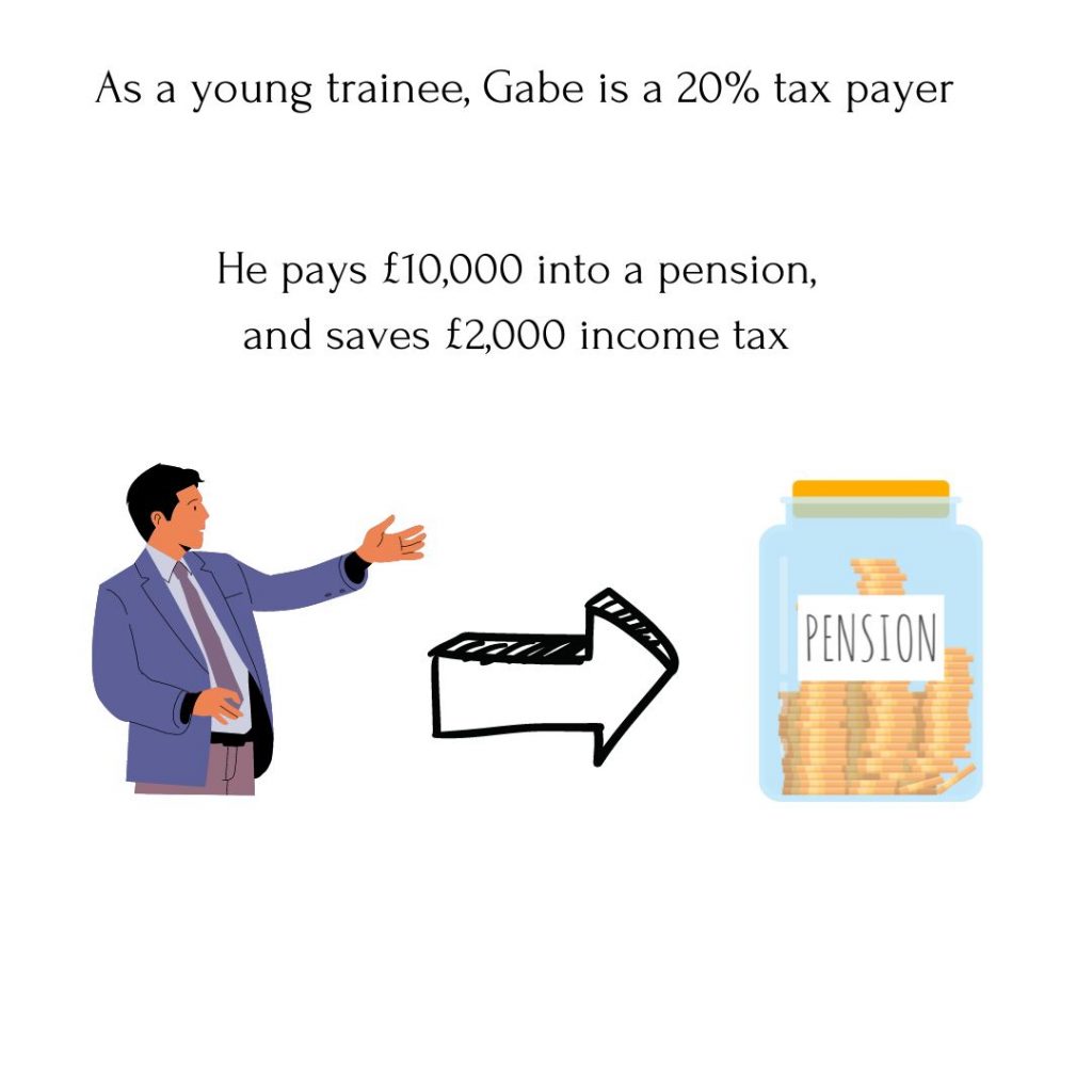 Gabe, is a trainee solicitor. At age 30, he earns £30,000 per year.