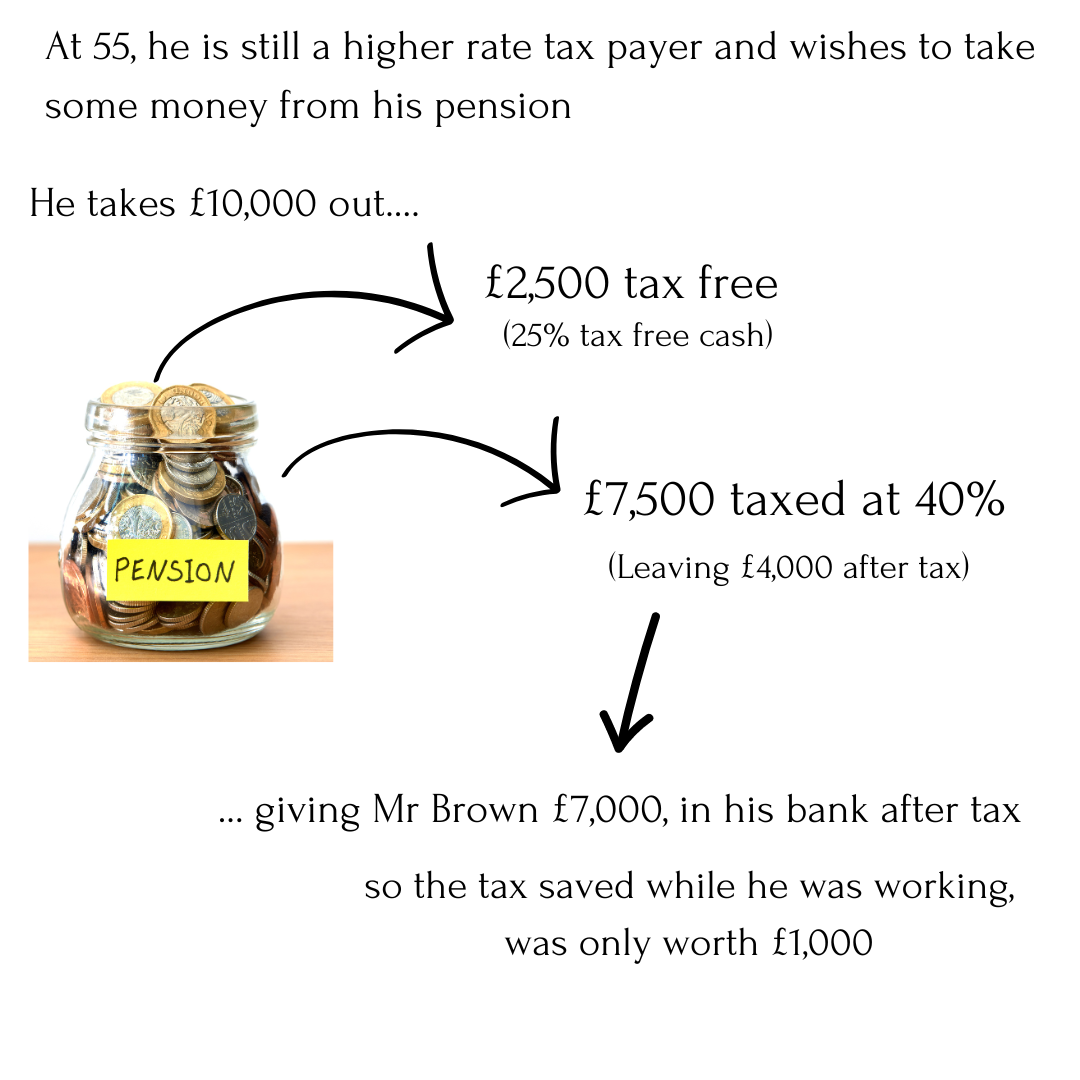 However, it is a potential situation for someone who is a basic rate tax payer when they make a pension contribution, but a higher rate tax payer when they make the withdrawal.