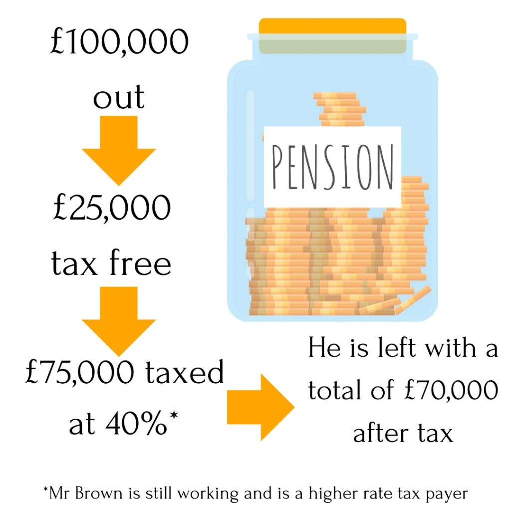 This is made up of £25,000 tax-free cash, and £75,000 taxable income.