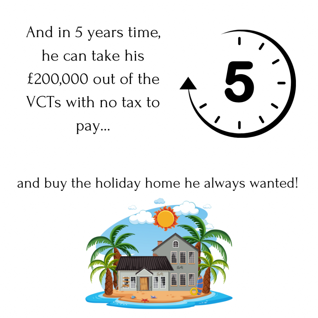 Five years later, he takes the £200,000 out of the VCT to buy his holiday home